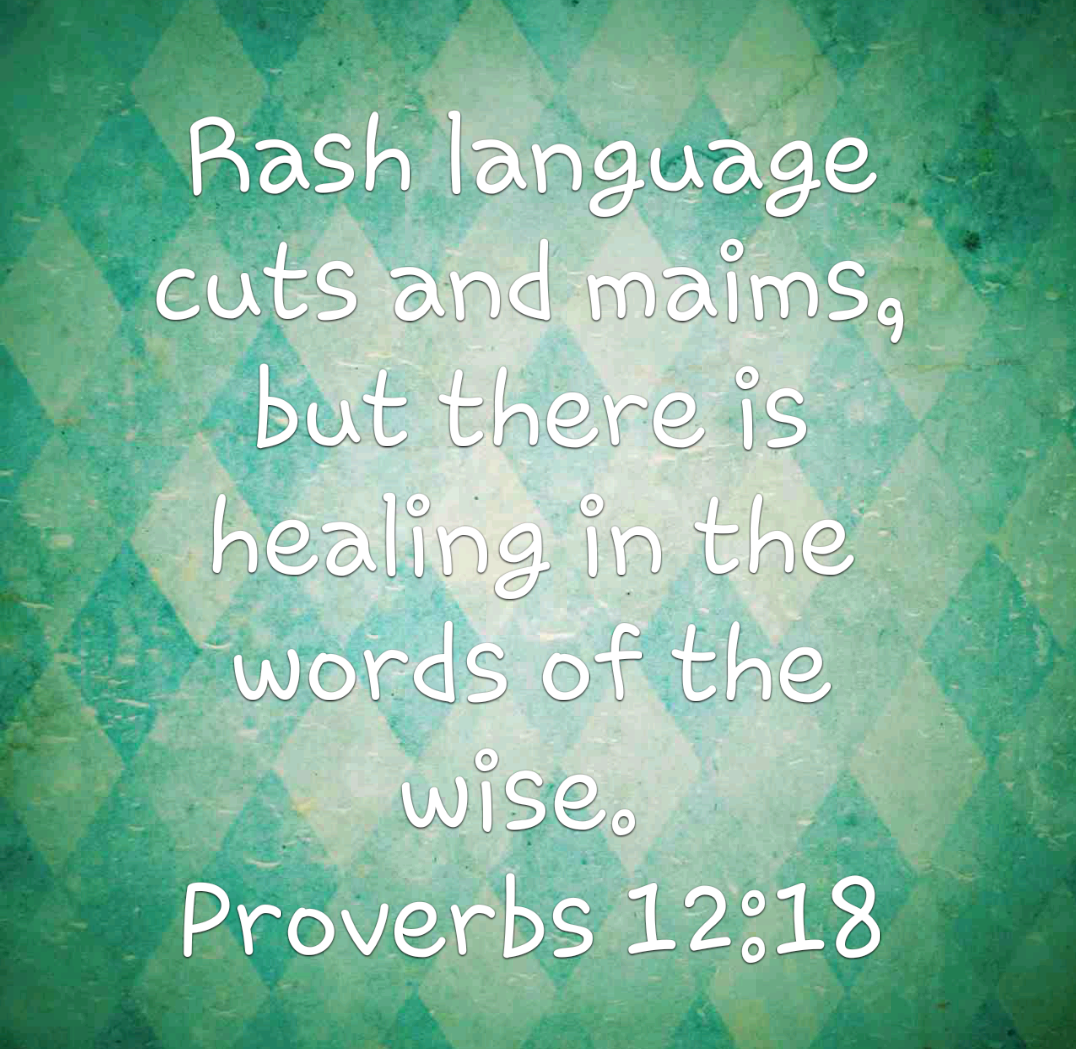 “Rash language cuts and maims, but there is healing in the words of the wise”.(Proverbs 12: 18 MSG)