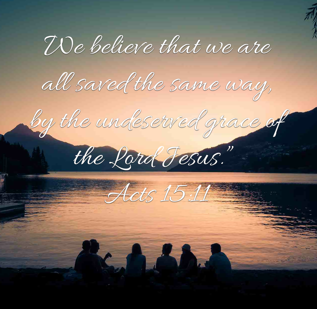 “God knows people’s hearts, and he confirmed that he accepts Gentiles by giving them the Holy Spirit, just as He did to us. He made no distinction between us and them, for He cleansed their hearts through faith. So why are you now challenging God by burdening the Gentile believers with a yoke that neither we nor our ancestors were able to bear? We believe that we are all saved the same way, by the undeserved grace of the Lord Jesus.” (Acts of the Apostles 15:8-11 NLT )