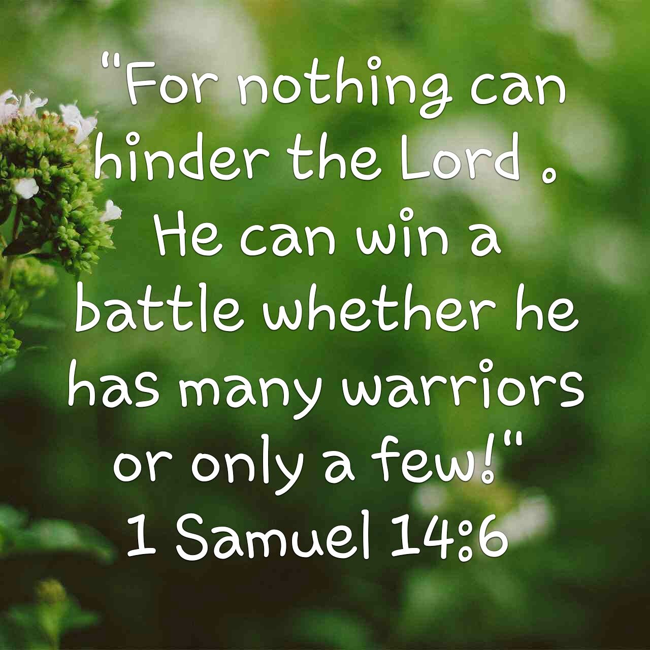 “Let’s go across to the outpost of those pagans,” Jonathan said to his armor bearer. “Perhaps the Lord will help us, for nothing can hinder the Lord . He can win a battle whether he has many warriors or only a few!”(v6 NLT)