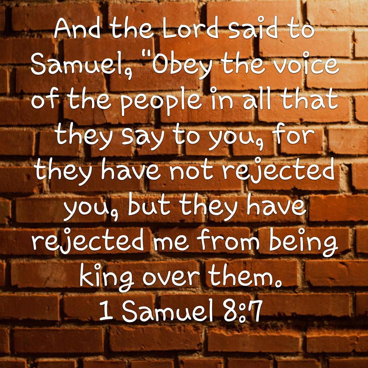 โ€œDo everything they say to you,โ€ the Lord replied, โ€œfor they are rejecting me, not you. They donโ€™t want me to be their king any longer. Ever since I brought them from Egypt they have continually abandoned me and followed other gods. And now they are giving you the same treatment. Do as they ask, but solemnly warn them about the way a king will reign over them” (v 7-9 NLT).