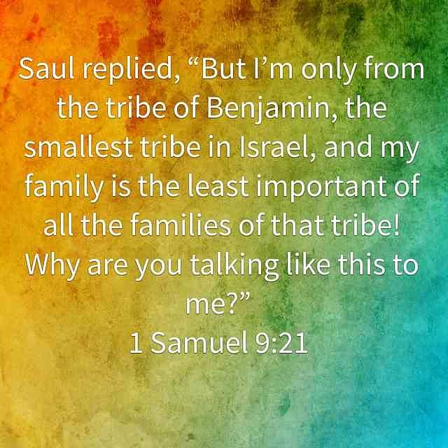 Saul replied, โ€œBut Iโ€™m only from the tribe of Benjamin, the smallest tribe in Israel, and my family is the least important of all the families of that tribe! Why are you talking like this to me?โ€