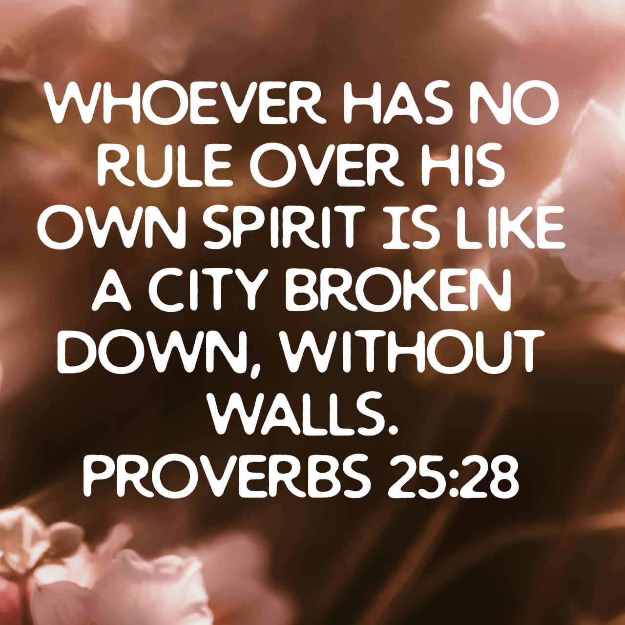 He who has no rule over his own spirit is like a city that is broken down and without walls. (Proverbs 25:28 AMPC)