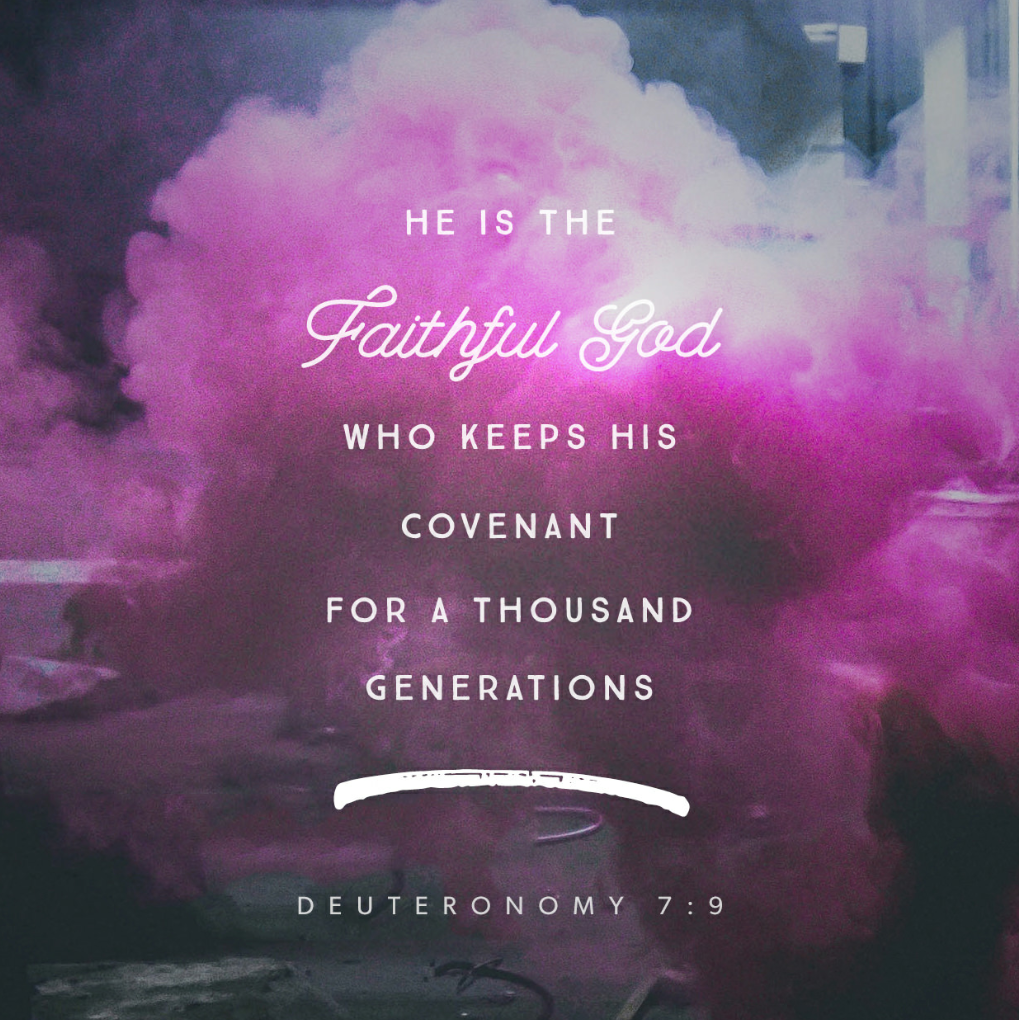 “For you are a holy people, who belong to the Lord your God. Of all the people on earth, the Lord your God has chosen you to be his own special treasure. The Lord did not set his heart on you and choose you because you were more numerous than other nations, for you were the smallest of all nations! Rather, it was simply that the Lord loves you, and he was keeping the oath he had sworn to your ancestors. That is why the Lord rescued you with such a strong hand from your slavery and from the oppressive hand of Pharaoh, king of Egypt. Understand, therefore, that the Lord your God is indeed God. He is the faithful God who keeps his covenant for a thousand generations and lavishes his unfailing love on those who love him and obey his commands.”. (v6-9 NLT)