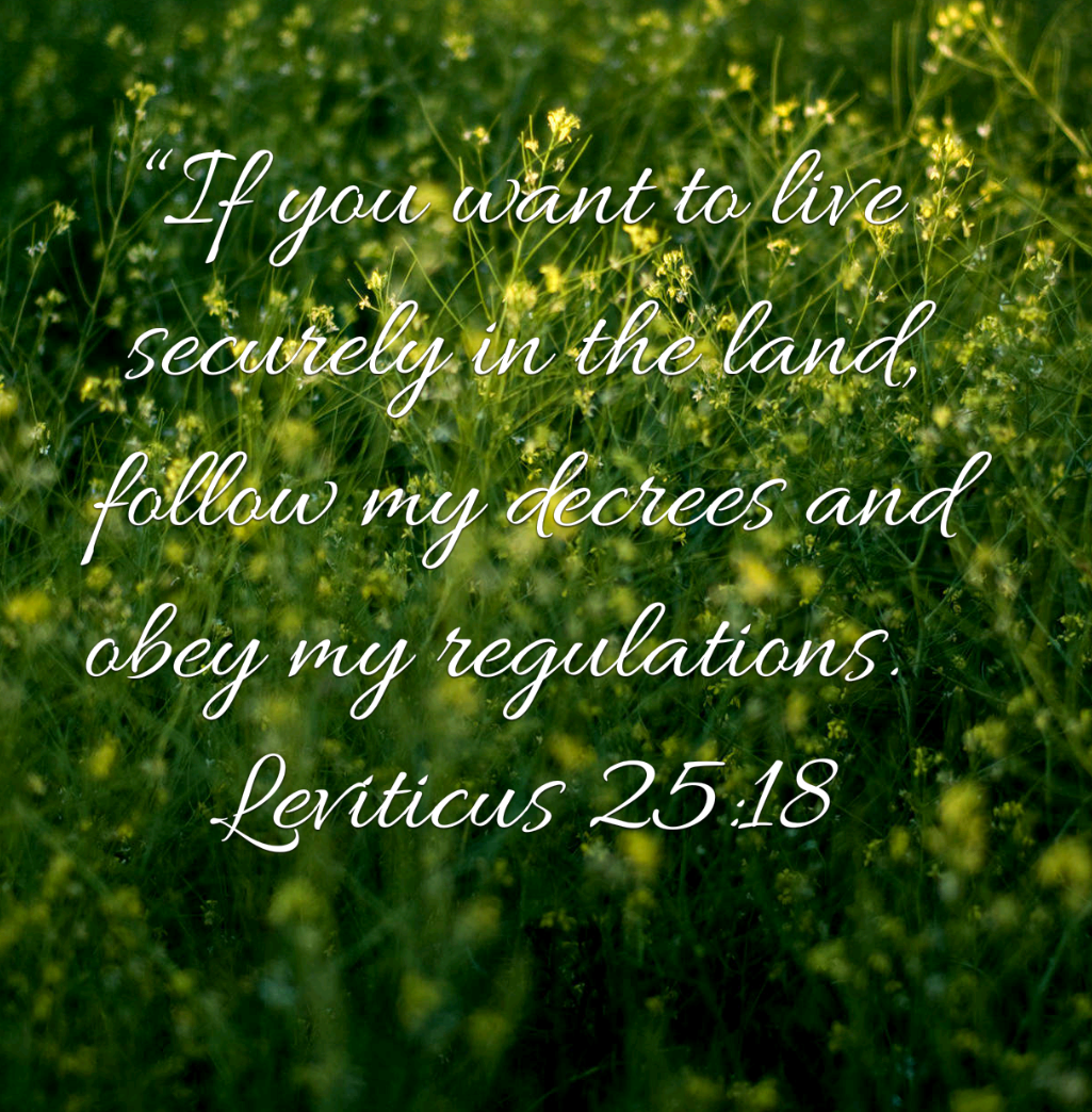 โIf you want to live securely in the land, follow my decrees and obey my regulations. Then the land will yield large crops, and you will eat your fill and live securely in it. But you might ask, โWhat will we eat during the seventh year, since we are not allowed to plant or harvest crops that year?โ Be assured that I will send my blessing for you in the sixth year, so the land will produce a crop large enough for three years. When you plant your fields in the eighth year, you will still be eating from the large crop of the sixth year. In fact, you will still be eating from that large crop when the new crop is harvested in the ninth year”.(Leviticus 25:18-22 NLT)