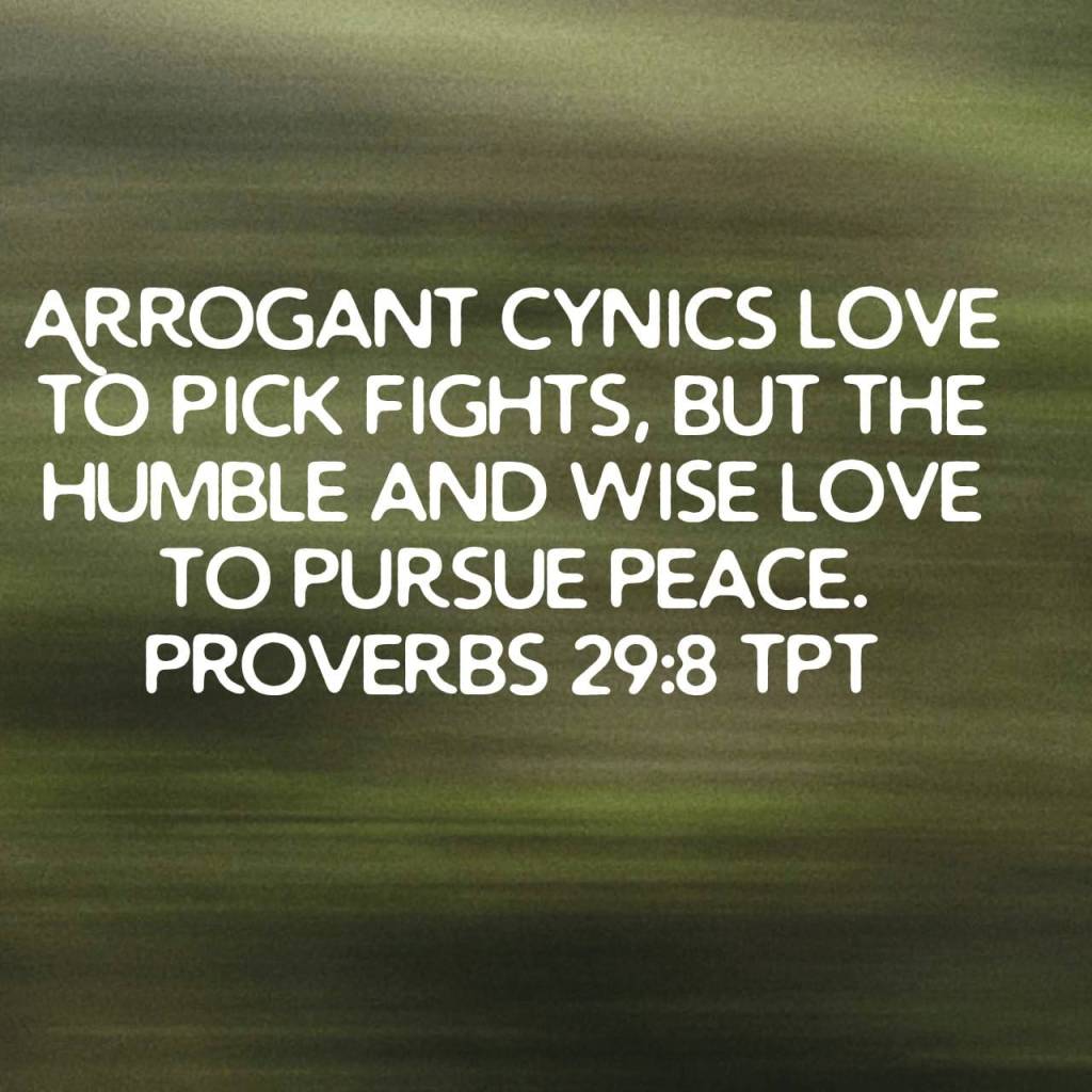 Are you inclined to pick fights or committed to being peacemakers. This verse tells us the wise loves to pursue peace but the arrogant pick fights. It is the wise who actively seek peace, choosing humility over pride and reconciliation over discord.