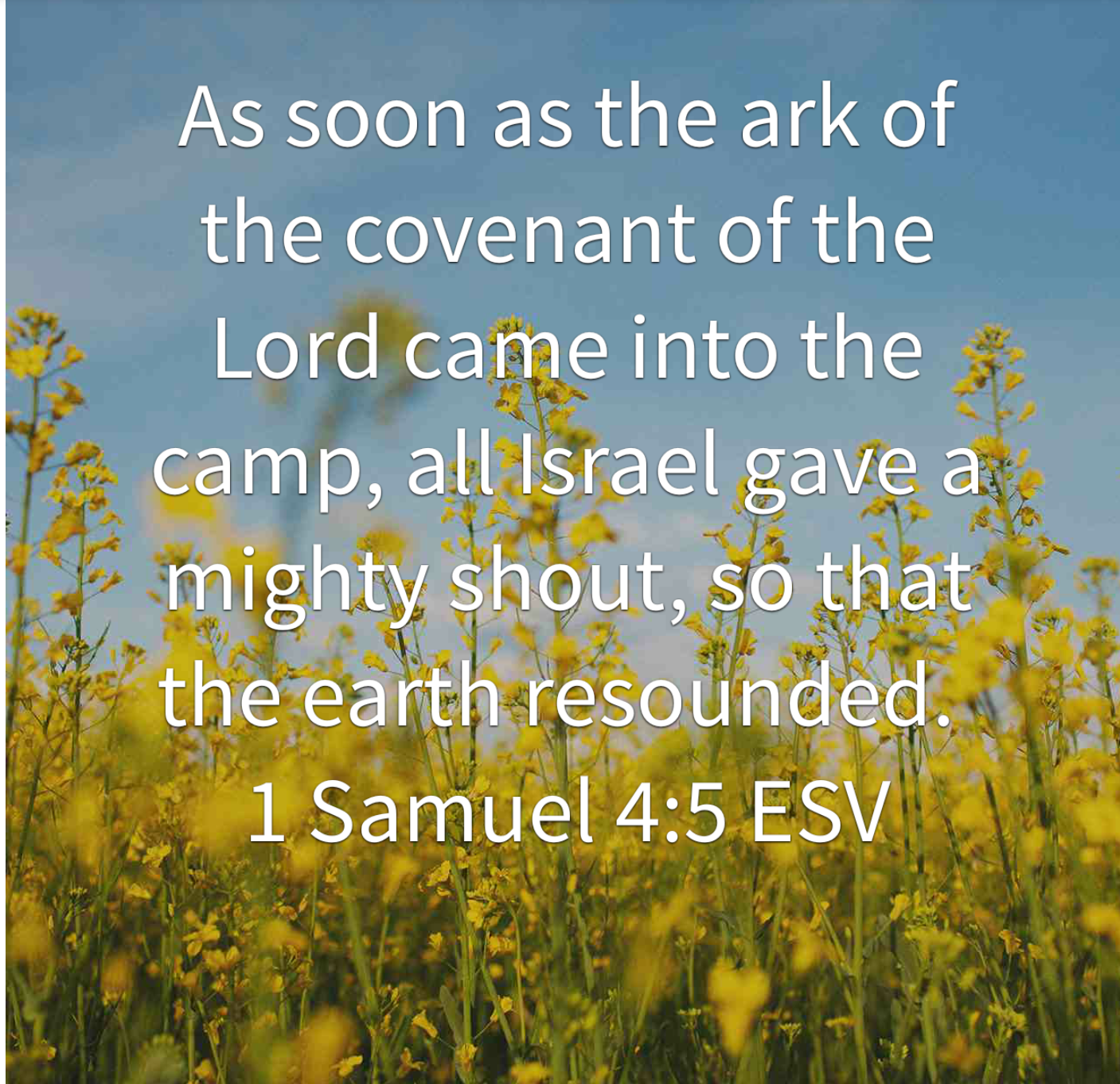 “And Samuel’s words went out to all the people of Israel. At that time Israel was at war with the Philistines. The Israelite army was camped near Ebenezer, and the Philistines were at Aphek. The Philistines attacked and defeated the army of Israel, killing 4,000 men. After the battle was over, the troops retreated to their camp, and the elders of Israel asked, “Why did the Lord allow us to be defeated by the Philistines?” Then they said, “Let’s bring the Ark of the Covenant of the Lord from Shiloh. If we carry it into battle with us, it will save us from our enemies.” So they sent men to Shiloh to bring the Ark of the Covenant of the Lord of Heaven’s Armies, who is enthroned between the cherubim. Hophni and Phinehas, the sons of Eli, were also there with the Ark of the Covenant of God. When all the Israelites saw the Ark of the Covenant of the Lord coming into the camp, their shout of joy was so loud it made the ground shake!” (V1-5 NLT)