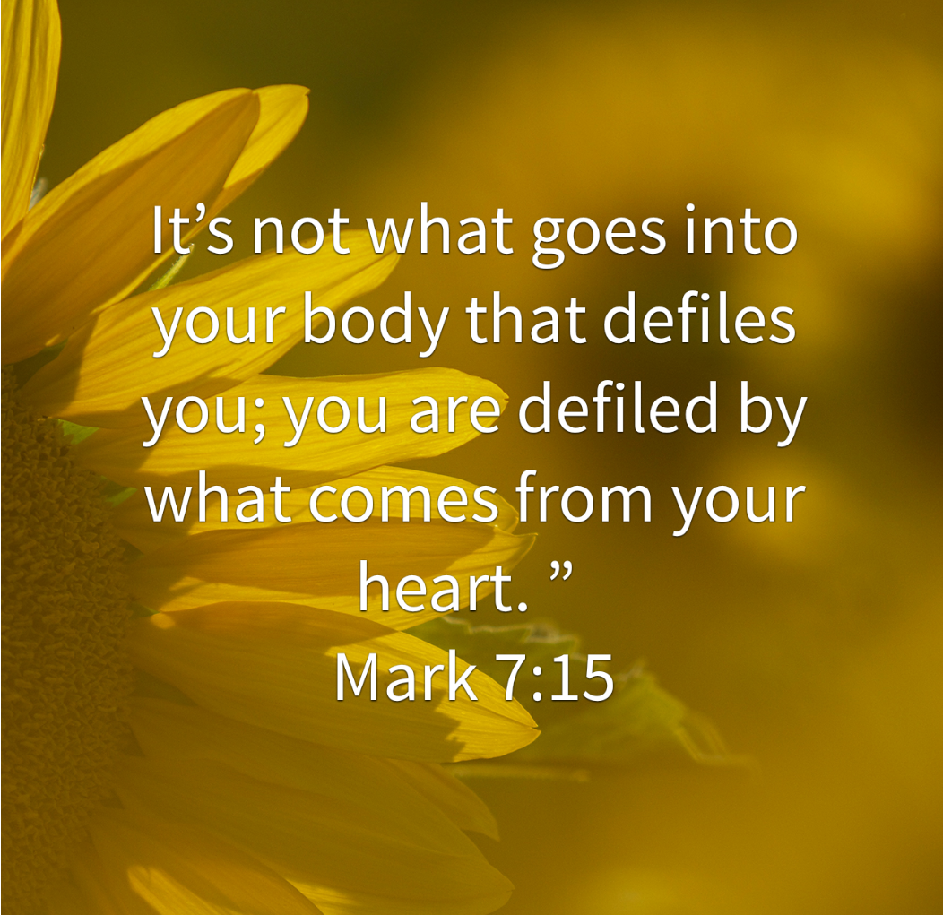 “It’s not what goes into your body that defiles you; you are defiled by what comes from your heart”(NKJV)