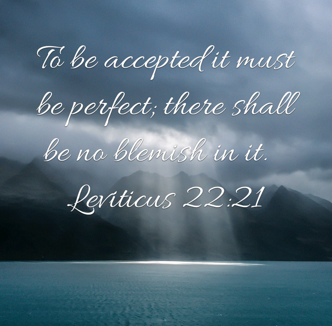 “And when anyone offers a sacrifice of peace offerings to the Lord to fulfill a vow or as a freewill offering from the herd or from the flock, to be accepted it must be perfect; there shall be no blemish in it”. (Leviticus 22:21 ESV)