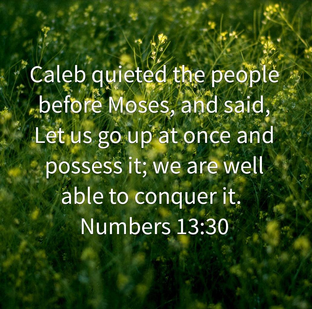 “Then Caleb silenced the people before Moses and said, βWe should go up and take possession of the land, for we can certainly do it.β (Num 13: 30 NIV)