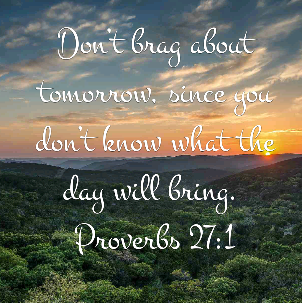 “Don’t brag about tomorrow, since you don’t know what the day will bring” (V1 NLT).