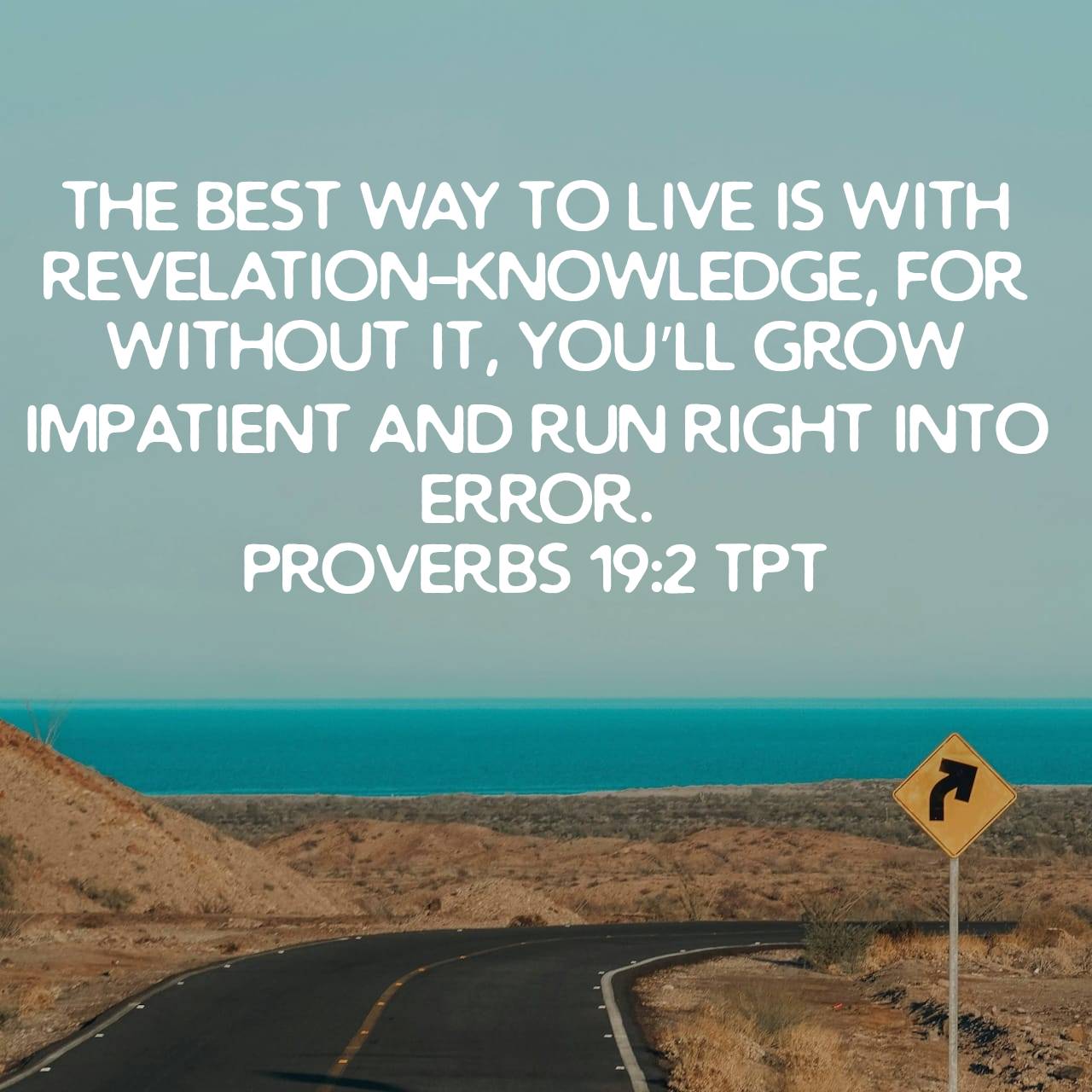 “The best way to live is with revelation-knowledge, for without it, you’ll grow impatient and run right into error.” (Proverbs 19:2 TPT)